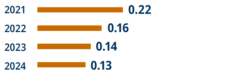 1 LTIF (Lost Time Injury Frequency Rate) is the number of the company’s employees who suffered lost time accidents related to a serious work injury according to the work injury severity report (including fatalities) multiplied by 1 million man-hours and divided by the total number of man-hours worked during the 12 reporting months.
