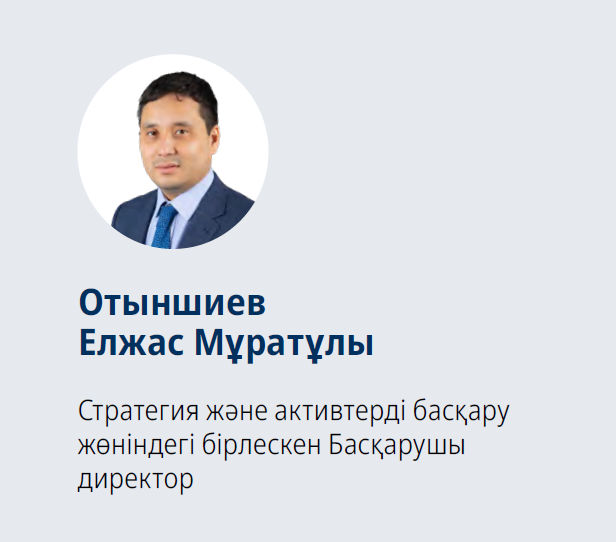 2024 жылғы 31 желтоқсандағы жағдай бойынша Басқарма құрамына Стратегия және активтерді басқару жөніндегі Басқарушы директор қызметін атқарған Ернат Құдайбергенұлы Бердіғұловты қоса алғанда, 6 мүше кірді. Оның өкілеттігі 2025 жылдың 26 наурызынан бастап мерзімінен бұрын тоқтатылды.