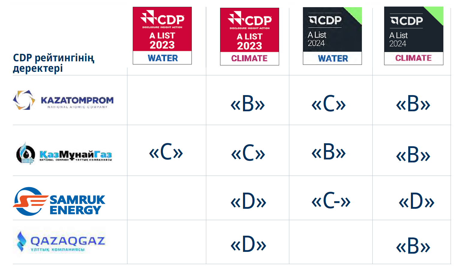 Энергетика, өндіруші және мұнай өңдеу секторларының Компаниялары парниктік газдар шығарындылары, климаттық тәуекелдер мен мүмкіндіктер туралы деректерді ұсыну және өз өнімдерінің толық көміртегі ізін талдау арқылы Carbon Disclosure Project (CDP) халықаралық жобасына қатысады.