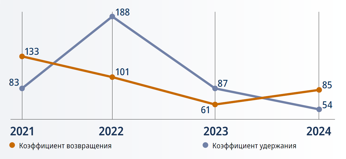 Ежегодно мы повышаем заработную плату производственникам. Так, среднегодовой прирост зарплаты за 2021–2024 годы составил 22%.