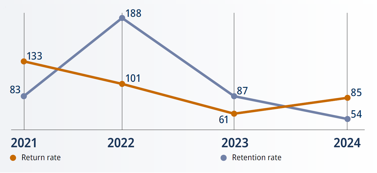 In 2024, 53,799 employees of the Fund have undergone performance and career development assessments, representing 20% of the total workforce.