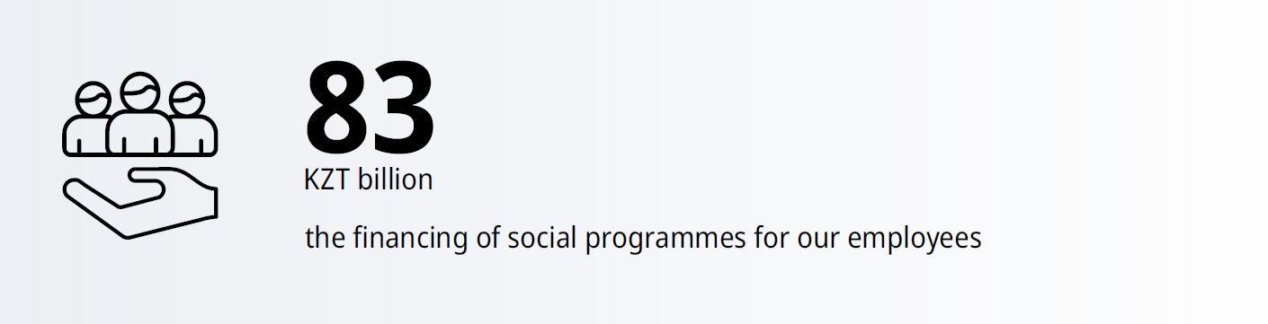 To create favourable conditions for efficient work, attract and retain highly qualified personnel, we provide our employees with social support. We provide our full-time employees with all social guarantees and benefits stipulated by the Labour Code of the Republic of Kazakhstan, which are enshrined in collective agreements or regulated in accordance with internal regulatory documents of enterprises.