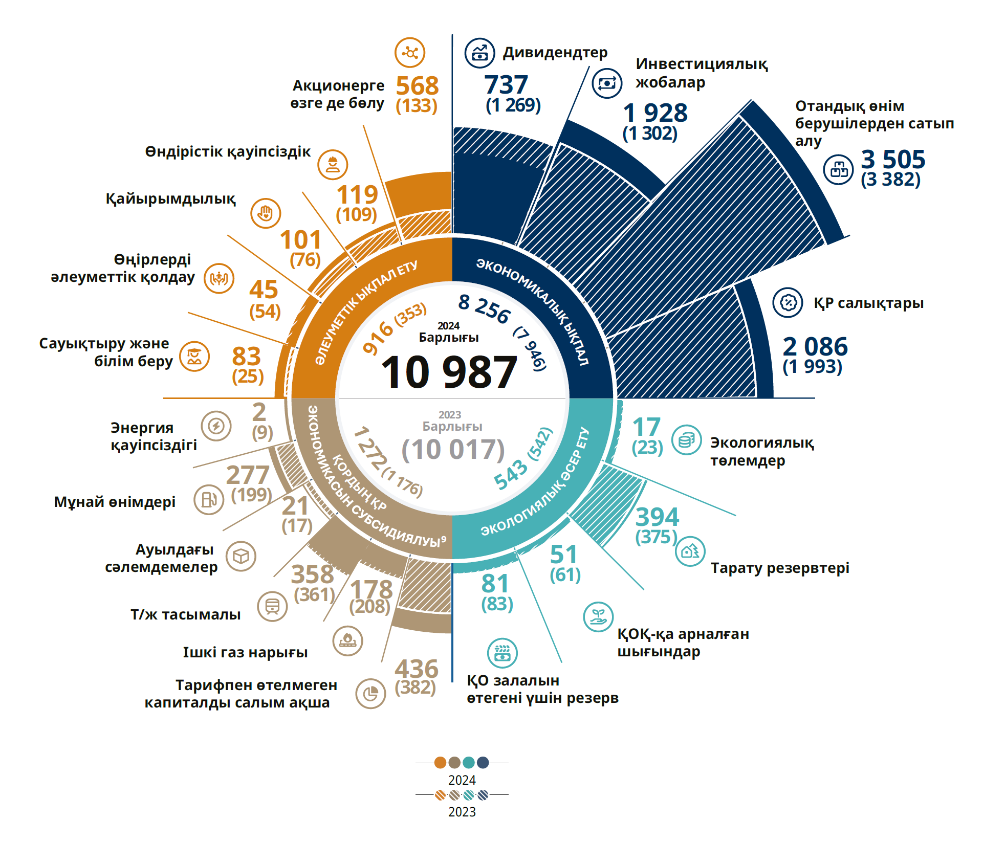 Қор активтер портфелін басқару, стратегиялық инвестициялық жобалар және әлеуметтік маңызы бар бастамаларға қатысу арқылы ұлттық экономиканың нығаюын және азаматтардың әл-ауқатының өсуін қолдайды.