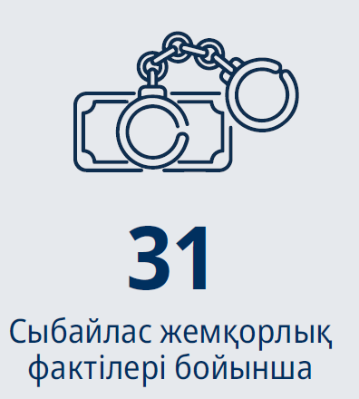 Сыбайлас жемқорлық/ұрлық фактілері бойынша 176 өтініш немесе 31% келіп түсті. Сыбайлас жемқорлық фактілері бойынша - 11, алаяқтық/ұрлық фактілері бойынша - 6 өтініш расталды.