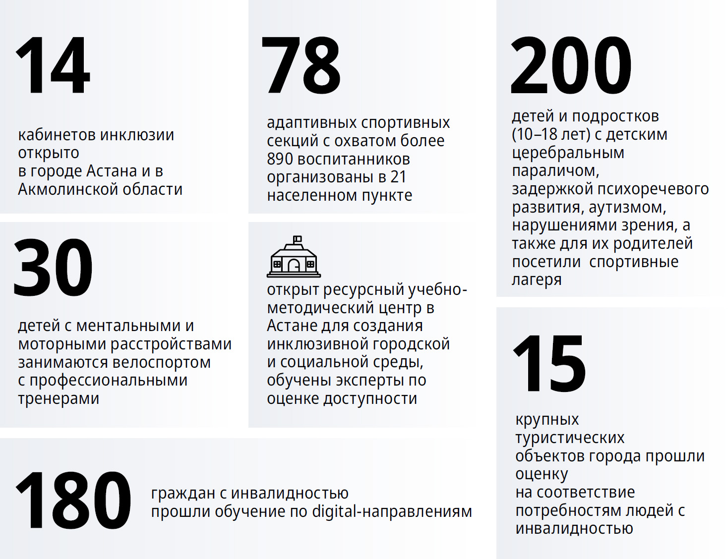 Мы открываем в регионах Казахстана реабилитационные центры, спортивные комплексы и адаптивные спортивные секции. Мы обучаем молодежь с инвалидностью цифровым профессиям, содействуем в трудоустройстве. Кроме того, открываем в школах инклюзивные кабинеты, а также открываем центры раннего вмешательства для детей с аутизмом.
