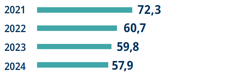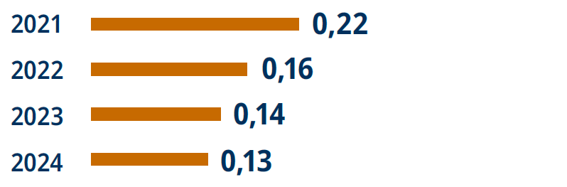 1 LTIF (коэффициент травм с потерей рабочего времени) – количество работников компании, пострадавших в несчастных случаях с потерей трудоспособности, относящихся к тяжелой производственной травме согласно заключению о степени тяжести производственной травмы (в т. ч. погибшие), умноженное на 1 миллион человеко-часов и деленное на общее количество отработанных человеко-часов за 12 отчетных месяцев.